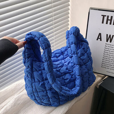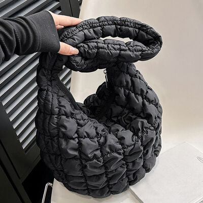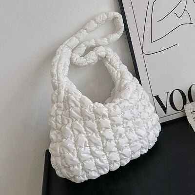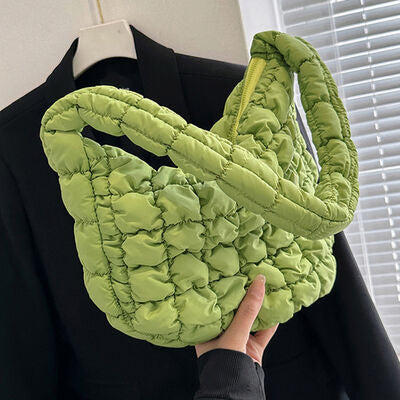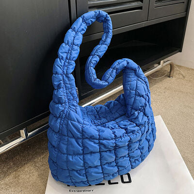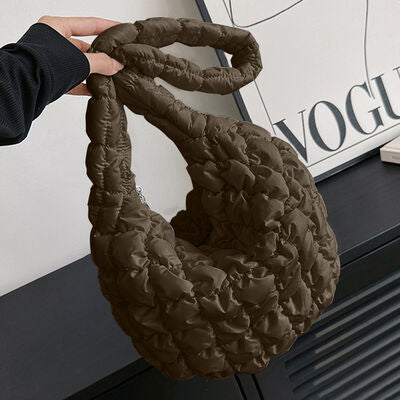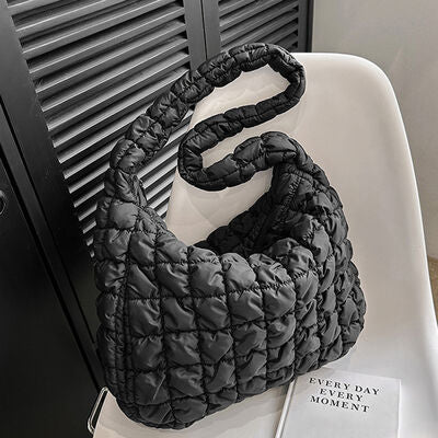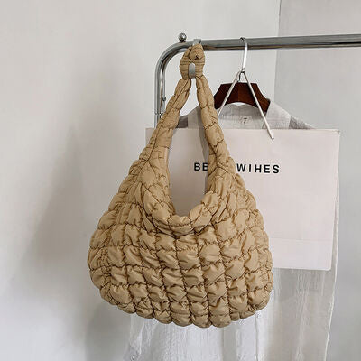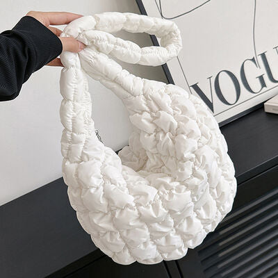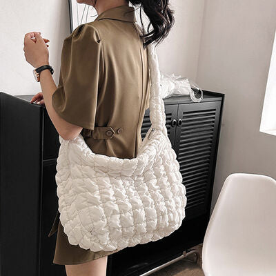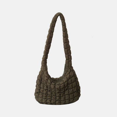 Quilted Pleated Plaid Shoulder Bag with Zipper